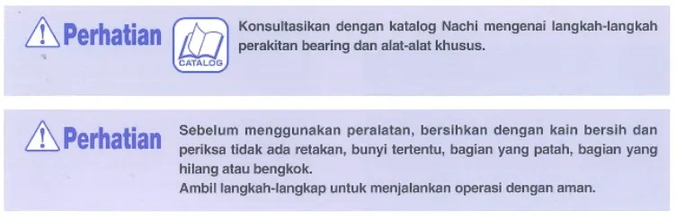 Bearing harus dipindahkan dengan hati-hati untuk menghindari runtuhnya muatan atau jatuhnya bendabenda. Berhati-hatilah agar tidak terjadi goresan dan bengkok akibat goncangan atau masuknya debu akibat rusaknya bungkusan.